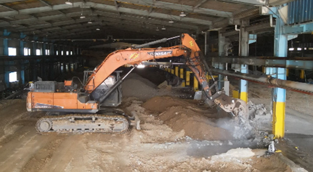The Sterling Static Pulverizer is a fixed-type attachment for secondary demolition. With its powerful jaws and robust structure, it can crush reinforced concrete and separate rebar effectively.