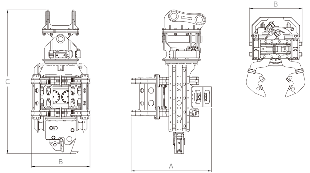 ※ Please take into consideration for oil flow/pressure, lifting capacity/stability of excavators, soil and site conditions.