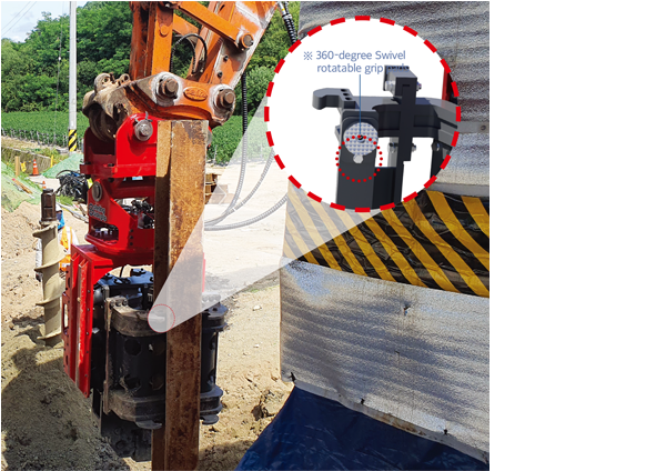 With 360-degree swivel capability and multi-angle tilt functionality, the jaws can securely grip piles even in corner positions by pivoting and holding firmly. This ensures precise and accurate clamping, even on rough or uneven surfaces.