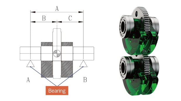 Longer life time of both “A bearing” and “B bearing” |
