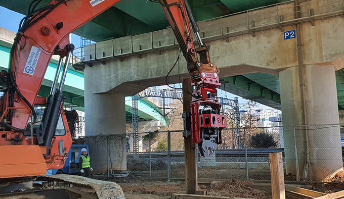 - Faster penetration and extraction than other side grip pile drivers thanks to bigger and double eccentric weight
