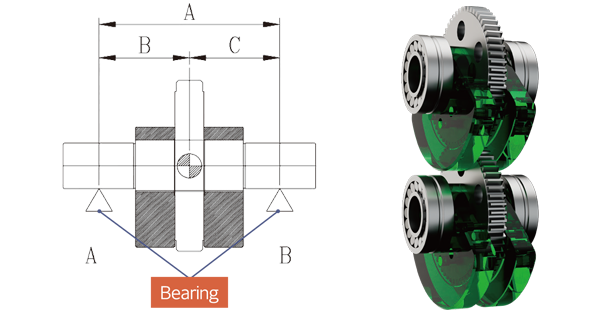 | Effect | Life time of both “A bearing” and “B bearing” is shorten due to imbalance of their weight. | Longer life time of both “A bearing” and “B bearing” |